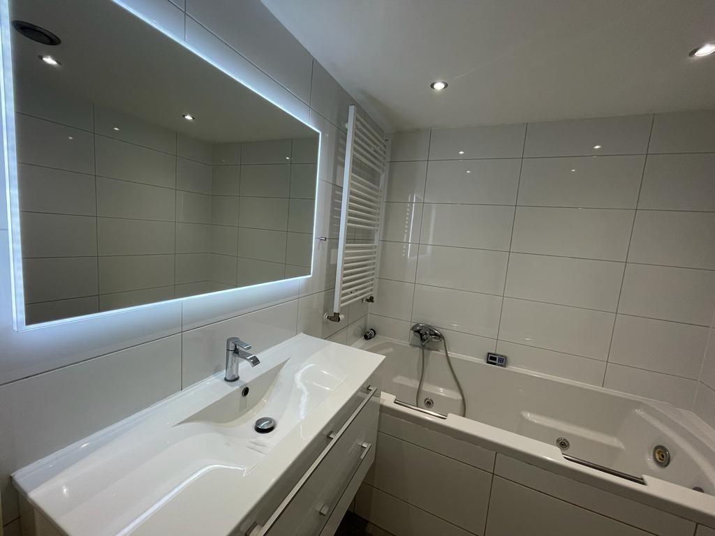 The apartment has 2 bedrooms and a bathroom. Both bedrooms are nicely finished with neutral colors. The large windows provide pleasant light. The bathroom is also luxurious with light colors. Here you have a duo-bubble bath, shower and washbasin. The box is located in the basement, convenient for bicycles.