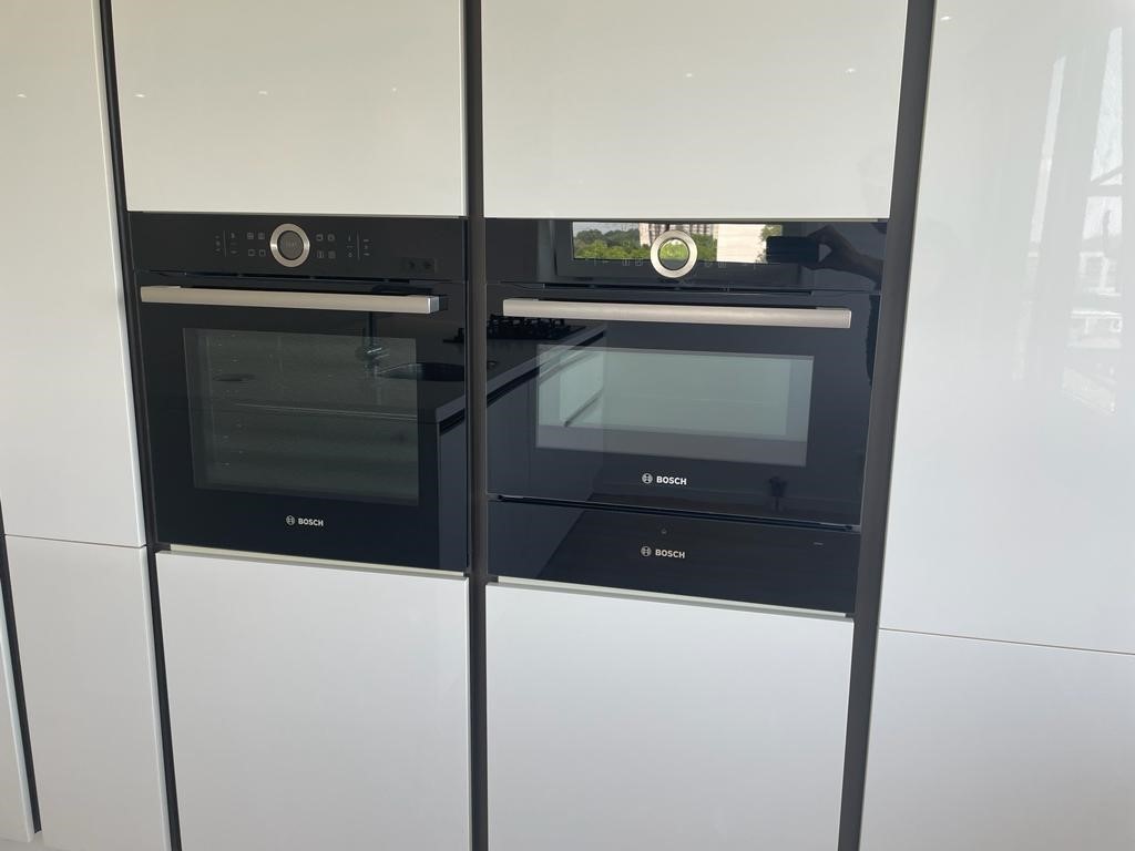 Luxe keuken met diverse apparatuur , vaatwasser (Siemens), kookplaat, oven en combi met warmhoudplaat (Bosch)